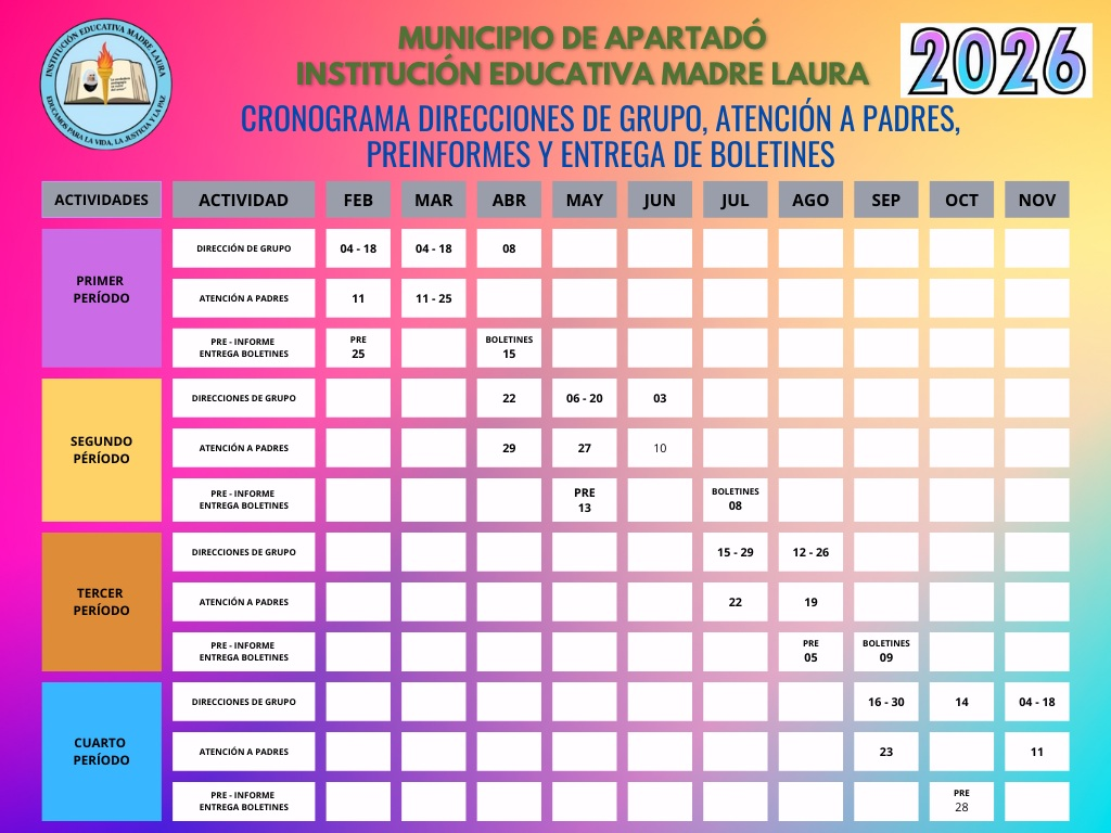 Ingresa con tu usuario y contraseña, e interactúa con “el sistema de información” de I.E. Madre Laura Apartado.