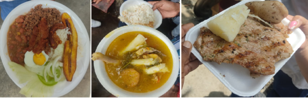 De esta forma lucieron los platos fuertes del almuerzo: bandeja paisa, sancocho de gallina y trifásico y la espectacular carne asada.